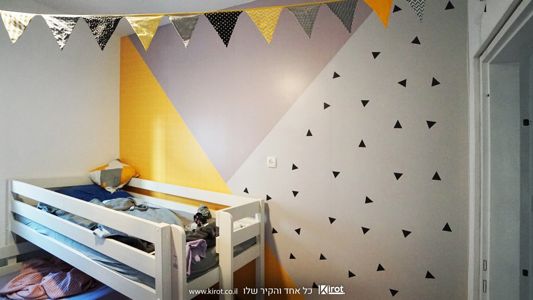 טפט סקנדינבי משולשים מעניק לקיר סגנון מודרני עם משחקי משולשים וקווים שיוצרים עניין לכל חלל. שילוב הצבעים העדינים מעניק לחלל רוגע ותחושת בטחון.